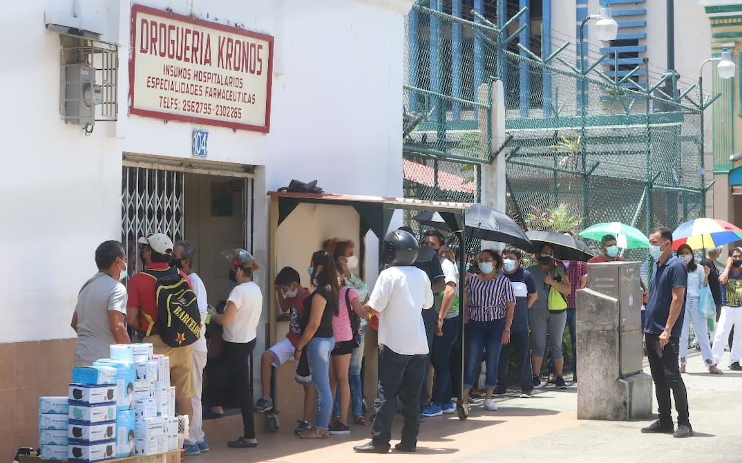 Más de quince personas hicieron fila la mañana de hoy en los exteriores de una distribuidora de insumos hospitalarios en el sector de las distribuidoras farmacéuticas, en las calles Ximena y Alejo Lascano, en el centro de Guayaquil. Este sector estuvo copado de vendedores y ciudadanos que buscaron abastecerse de medicamentos e insumos para la jornada electoral de mañana y para los próximos días.