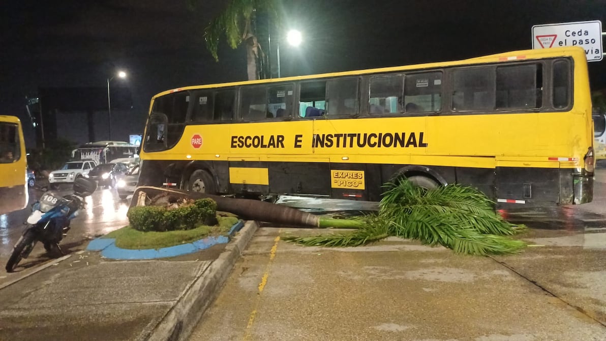 Entre ellos, el bus escolar, que terminó impactándose contra una palmera, la cual fue derribada por la fuerza del choque. La unidad quedó ocupando uno de los carriles en sentido norte.