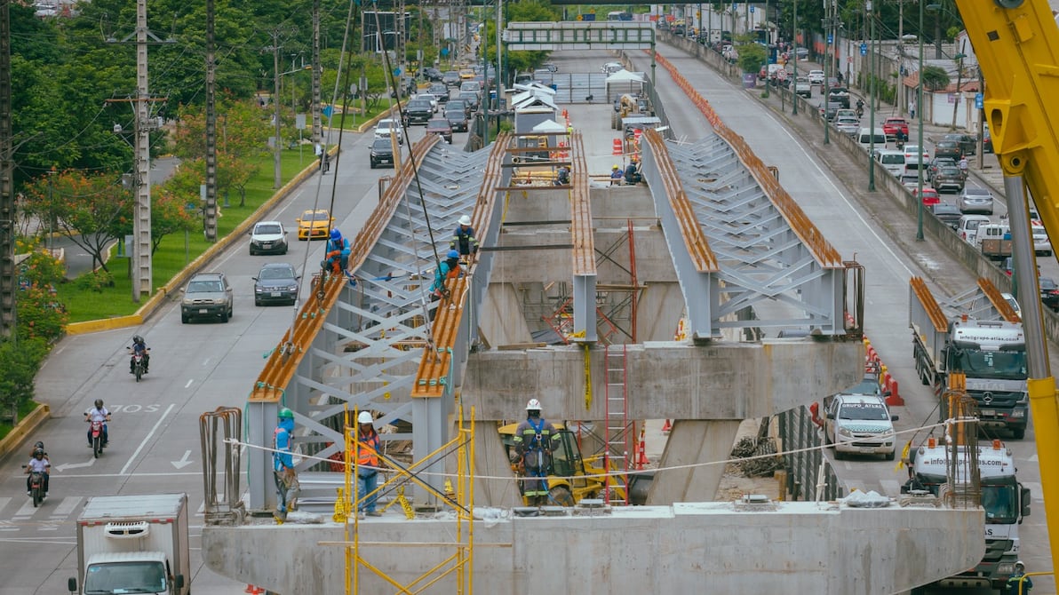 La alcaldesa subrogante de Guayaquil, Tatiana Coronel, supervisó el izado de vigas en uno de los pasos elevados que se construye en la avenida del Bombero, en el sector Los Ceibos, en el norte de la ciudad.