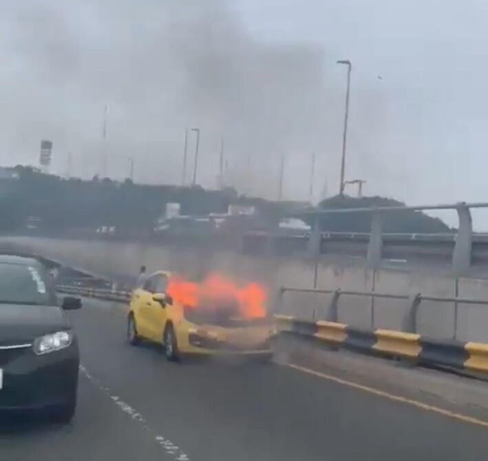 Un taxi se incendió en el paso a desnivel de la avenida Pedro Menéndez Gilbert, norte de Guayaquil.