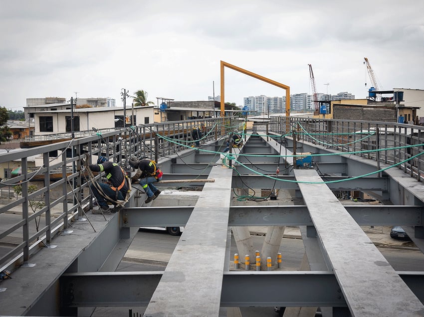 La Dirección de Obras Públicas del Municipio de Guayaquil continúa con la construcción del nuevo paso peatonal sobre la autopista Narcisa de Jesús, a la altura de la cooperativa Juan Pablo II y Brisas del Norte.