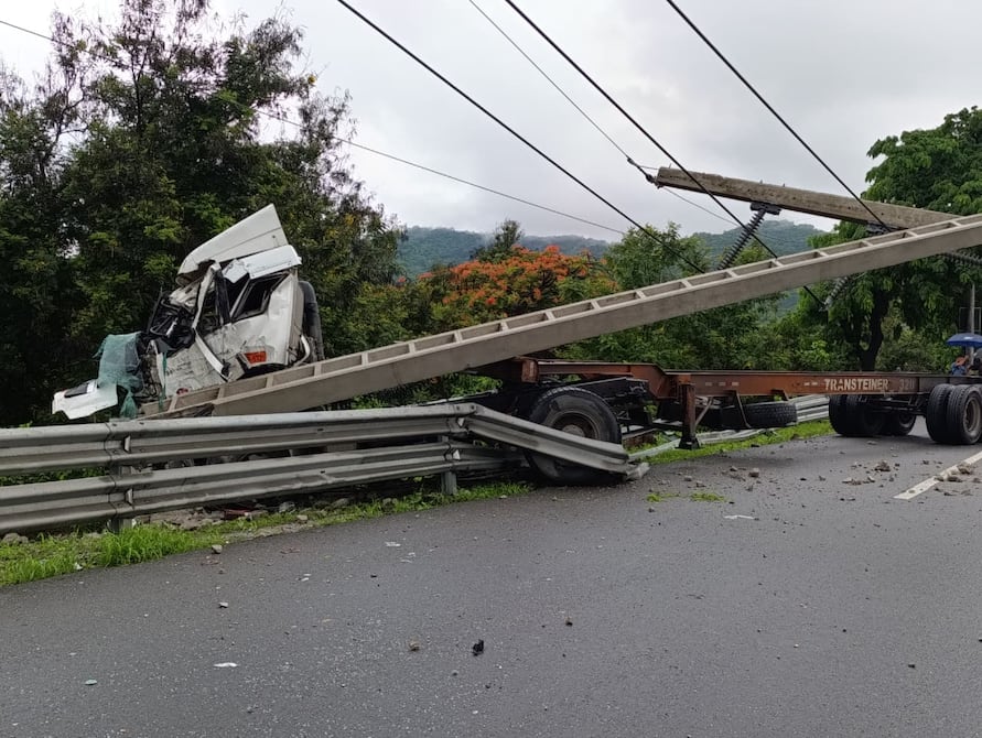 En el carril donde se encuentra el tráiler siniestrado se colocaron conos para aislar a los choferes y permitir que las grúas puedan retirar tanto el poste dañado como el vehículo pesado.