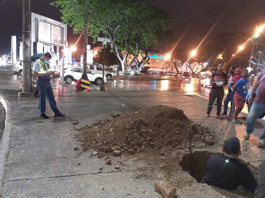 Cámaras de la CSCG captaron cuando varios trabajadores perforaban el parterre central de las avenidas Agustín Freire e Isidro Ayora.