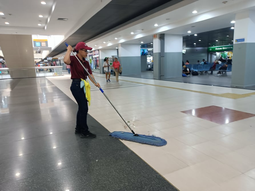 Sara y Juana estrenaron este mes su nuevo uniforme: jean azul, una camiseta y una gorra vino tinto, grabadas con el nombre de su empleador, la Asociación de Servicios de Limpieza El Bejuco Asoserbej. Con otras 50 personas, ellas trapean los pisos de la Terminal Terrestre de Guayaquil, barren y recogen la basura hasta dejar todo brillante.