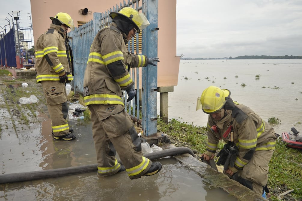 Para abastecerse, los equipos incluso rompieron barreras del Malecón con el fin de tomar agua directamente desde el río, una medida que refleja la magnitud del incendio y la necesidad de mantener un suministro constante.