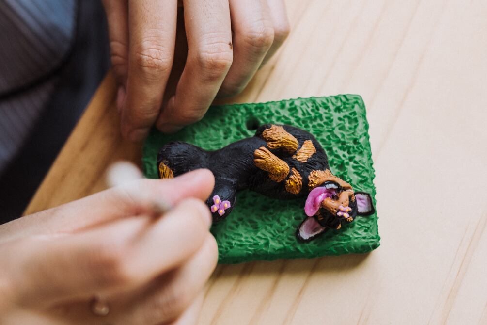 Ilustraciones, agendas y esculturas que se incorporan a bisutería, llaveros y jarros, son algunos de los productos que Giannella D’Stteffano vende a través de su perfil Dollcearte en la red social Instagram.