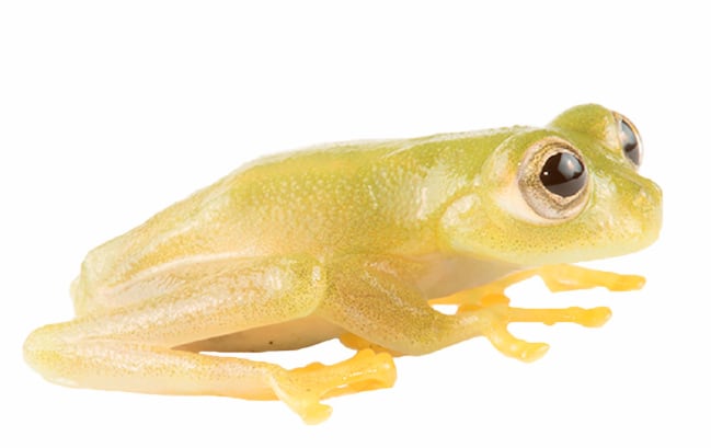 Sus dedos de manos y pies son amarillos, pericardio blanco (cubierto por iridóforos), tamaño corporal mediano, membrana interdigital reducida y ausencia de espinas humerales en los machos.