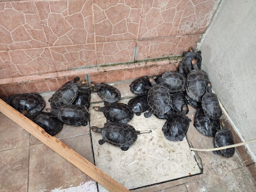En un allanamiento a una vivienda ubicada en El Coca, provincia de Orellana, se decomisaron 57 tortugas de tres especies diferentes. El operativo fue liderado por el personal del Ministerio del Ambiente, de la Unidad Nacional de Investigación de Delitos Contra el Ambiente y la Naturaleza, la Unidad de Protección del Medio Ambiente de la Policía Nacional y la Fiscalía.