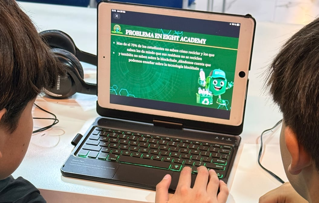 Y está liderada por un equipo de estudiantes de educación básica, dos chicos de 13 años. “Lo que no se mide, no se gestiona. Green Hackers convierte hábitos cotidianos en datos accionables y recompensables” es el eslogan del grupo, que ha utilizado tecnología blockchain. Ellos son Martín Tapia y Andrés Martínez, con la colaboración de su docente líder, Pablo Vega, y la mentora, Ana Parreño.