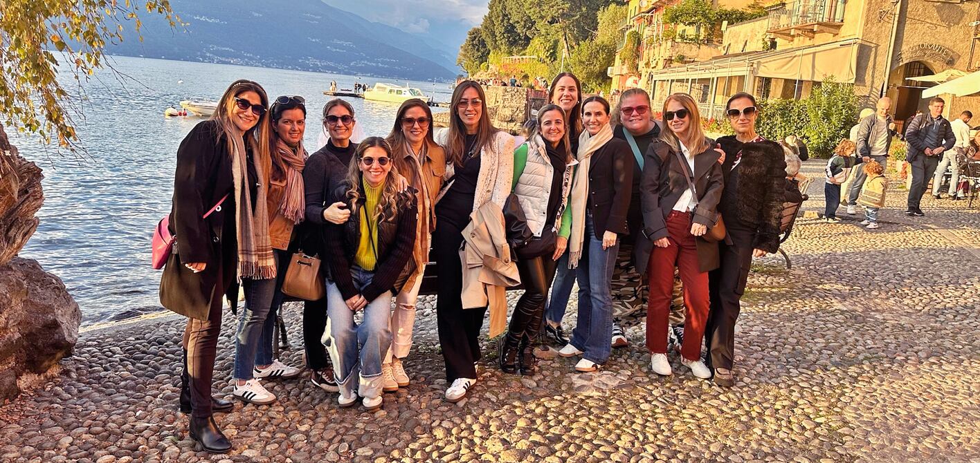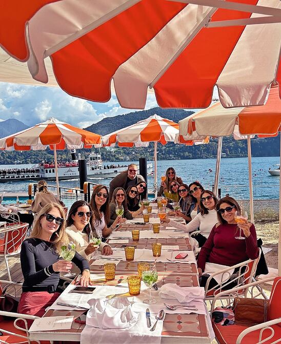 Tuvimos la suerte de poder hacer este viaje por nuestros 50 años, y aunque no es el primero que hacemos juntas, sí fue el más esperado. Teníamos claro que queríamos Italia, pero la oferta de opciones es infinita. Una noche de vinos nos decidimos por Como y cuadramos una fecha (tarea muy complicada entre trece mujeres con roles variados entre ejecutivas, madres y una jubilada entusiasta). Encontrar una casa no fue fácil, estábamos claras que íbamos a estar al pie del lago, pero las casas que uno googlea para trece pax son muchas veces impagables, y las bonitas pagables están alejadas. Pues encontramos dos casas que comparten jardín y son un sueño, con siete cuartos en total, tal y como lo necesitábamos, junto al agua.