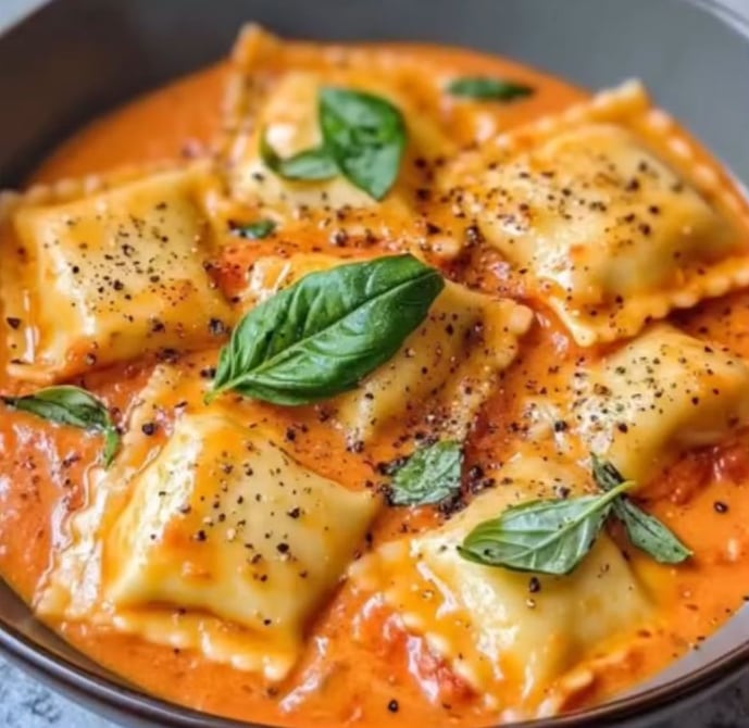 Ravioles de carne en salsa cremosa de tomate y paprika