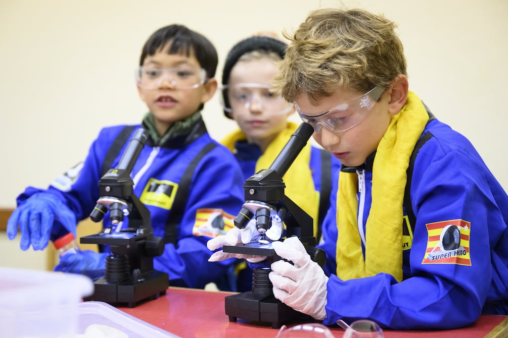 Un grupo de niños de 8 años de la escuela privada suiza Vivalys vistieron como astronautas para salir a recolectar rocas y muestras de hielo durante la Misión El Principito, una simulación de tres días de la vida en la Estación Espacial Internacional (ISS).