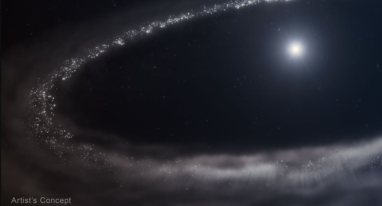 El telescopio espacial James Webb ha confirmado la presencia de hielo de agua cristalino en un disco de escombros polvorientos que orbita una estrella similar al Sol a 155 años luz de distancia.