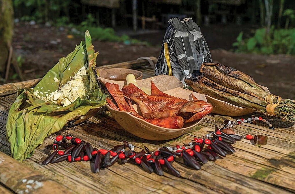 Descubre las artesanías y la gastronomía local. En el carnaval es posible encontrar ferias en las que los habitantes de la Amazonía exhiben y venden sus productos artesanales y alimentos tradicionales.