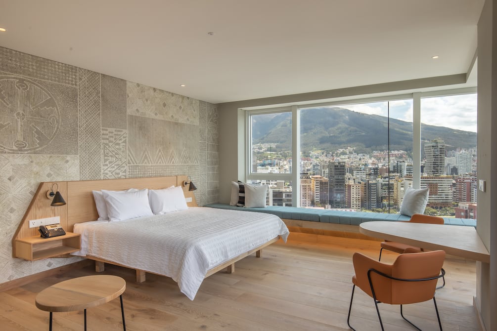 Características locales están presentes en su conceptualización e interiorismo, que incluyó en gran parte mano de obra nacional. “Tenemos espacios modernos con acabados y tejidos ecuatorianos, resaltando maderas pirograbadas de alto relieve que reflejan las planicies y los tejidos de artesanías de la Sierra ecuatoriana”, explicó Morejón.
