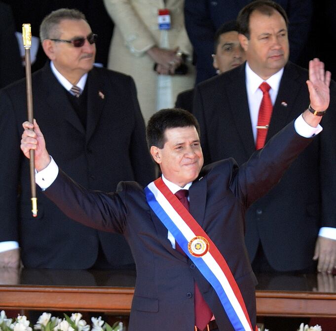 El empresario tabacalero Horacio Manuel Cartes Jara, de 57 años y afiliado del derechista Partido Colorado, se posesionó ayer como nuevo presidente de Paraguay hasta el 2018.