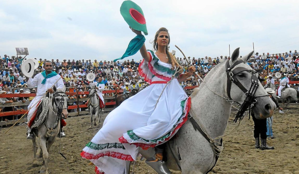 Haciendas de Los Ríos, Guayas, Manabí y Bolívar participaron en Palenque (Los Ríos), el pasado fin de semana, en la 5ª Feria Montubia, con cabalgatas, rodeos, acrobacias, doma de caballos, amorfinos, cantos, bailes y platos típicos. En la foto, la delegación de Manabí.