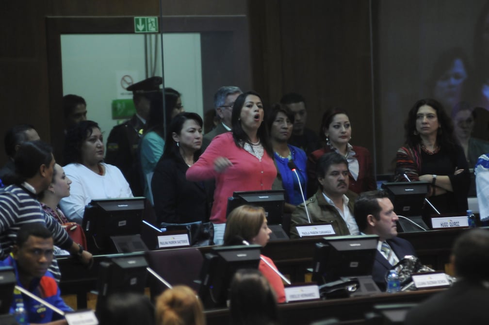 "Aquí no están los traidores compañero presidente...los traidores no son los que han tenido la tesis, de defender la vida de las mujeres...con el inmenso cariño que te tenemos te decimos que esta vez estás equivocado...pero por la unidad de la bancada y de los 100 compañeros asambleístas retiro la moción para que este bloque no tenga la posibilidad de evidenciar una ruptura",