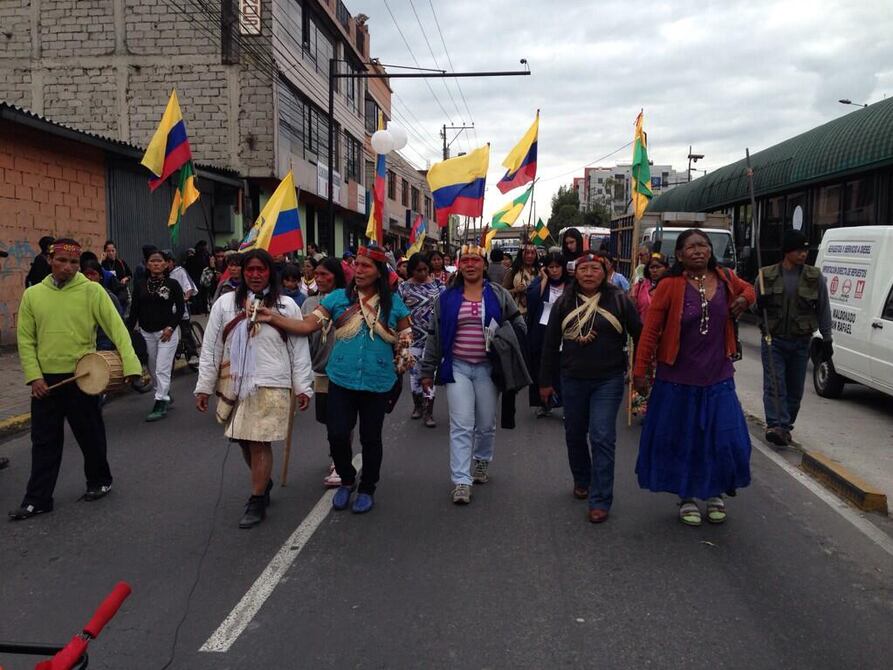 Luego de cinco días de caminata, un centenar de mujeres amazónicas de las nacionalidades Shuar, Kichwa, Zápara y Huaorani llegaron a Quito provenientes del Puyo para entregar un manifiesto de cuatro páginas al presidente de la República Rafael Correa y a la Asamblea Nacional, donde expresan su rechazo a la actividad petrolera en sus territorios.