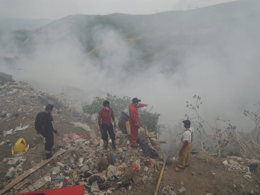 El incendio en el botadero de basura municipal de Esmeraldas está fuera de control. Así lo confirmaron los miembros del Cuerpo de Bomberos que se encuentran desplazados en el lugar. El incendio empezó ayer en la mañana y en la tarde tomó fuerza ocasionando una nube de humo pestilente que invade los barrios aledaños al depósito de basura.