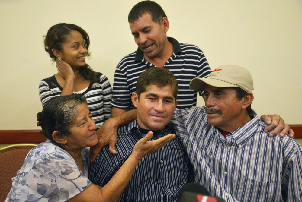 Al momento de salir del centro hospitalario, el pescador alzó su mano en señal de victoria y mostró una sonrisa abrazado a sus padres.