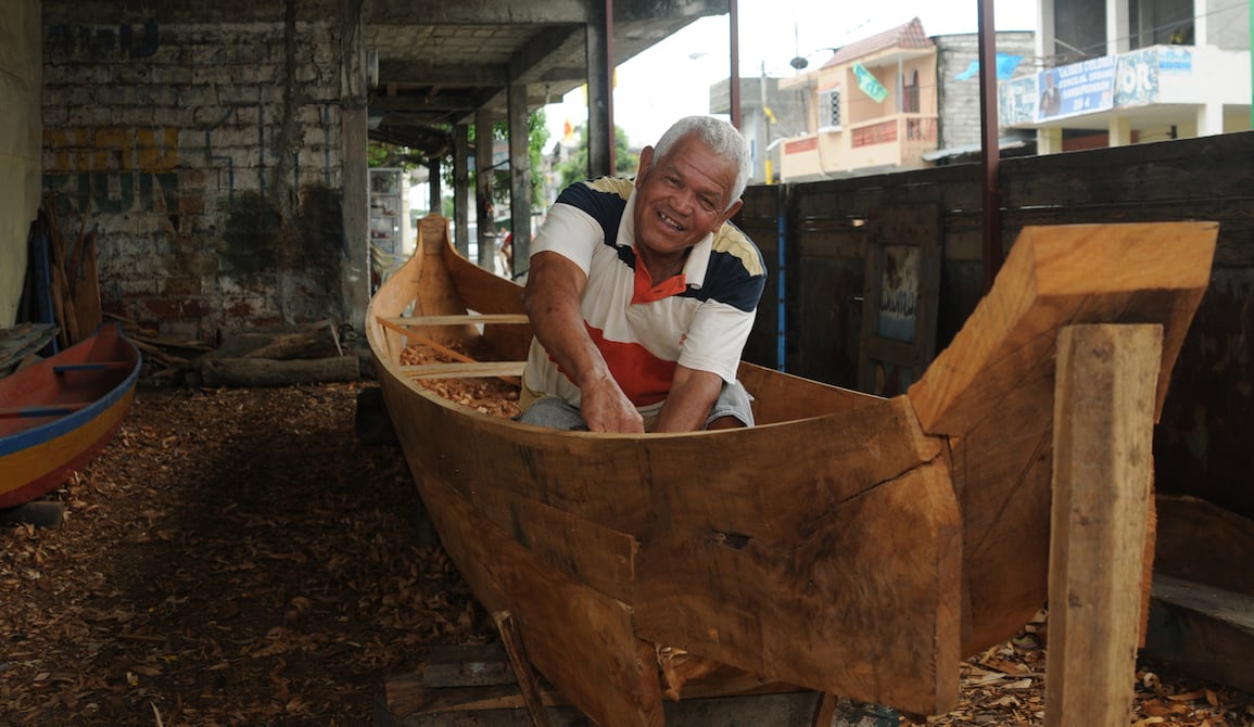 Tiene más de sesenta años elaborando canoas en Samborondón. Todos lo conocen como el Ñato y es uno de los canoeros más antiguos del cantón. Sus hijos no siguieron el mismo oficio.