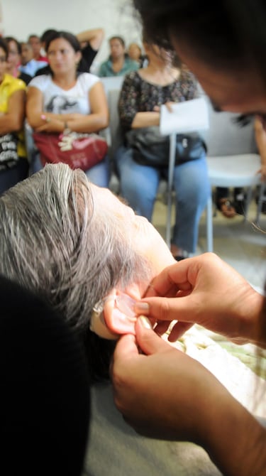 En el mezanine del edificio donde funcionan las instituciones del sector social, ubicado en la av. Plaza Dañín, en el norte de Guayaquil, unas 40 personas con discapacidad auditiva esperaban impacientes. Se trataba de adultos mayores en sillas de ruedas y menores de edad que no perdían de vista las cajas blancas que contenían las prótesis auditivas o, como ellos las llaman, los audífonos.