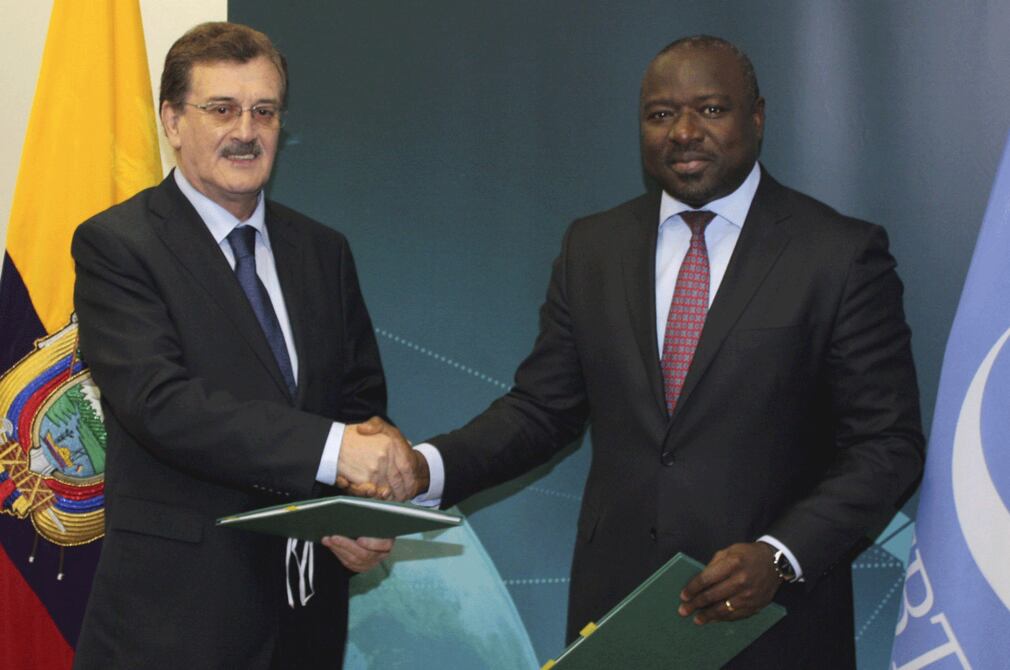 El secretario ejecutivo de la Organización del Tratado para la Prohibición Completa de los Ensayos Nucleares, Lassina Zerbo, y el embajador Wilson Pástor, formalizaron este martes en Viena la construcción de las dos estaciones.