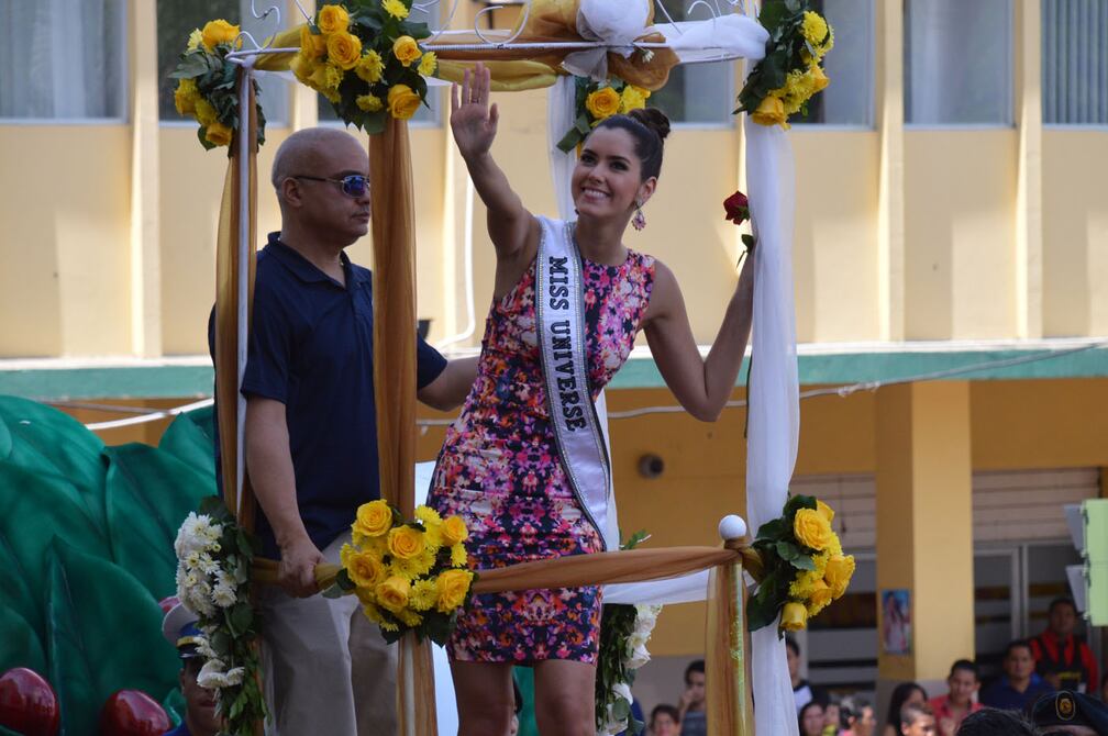 La Miss Universo 2015, Paulina Vega, bailó y se divirtió durante el inicio de las fiestas de cantonización de Machala. Ella recorrió la avenida 25 de Junio en un carro alegórico adornado con un sombrero, una taza de café y un grupo de músicos.