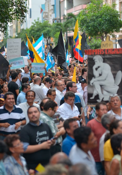 Por tercera vez en la semana, el centro de Guayaquil congregó a manifestantes en contra y a favor de dos proyectos de leyes del Gobierno, el de herencias y plusvalía.