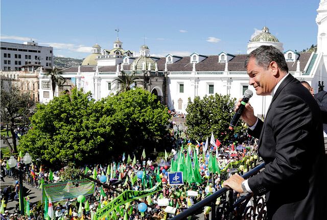 Unos 40 minutos duró la intervención del presidente Rafael Correa en la Plaza Grande ante sus partidarios que se congregaron desde las 09:00 frente a Carondelet para respaldarlo, luego de una semana de constantes protestas en su contra. Y ante ellos, el mandatario retó a la oposición a aplicar el artículo 105 de la Constitución de Montecristi para que solicite una consulta de revocatoria de mandato y lo saquen del poder.