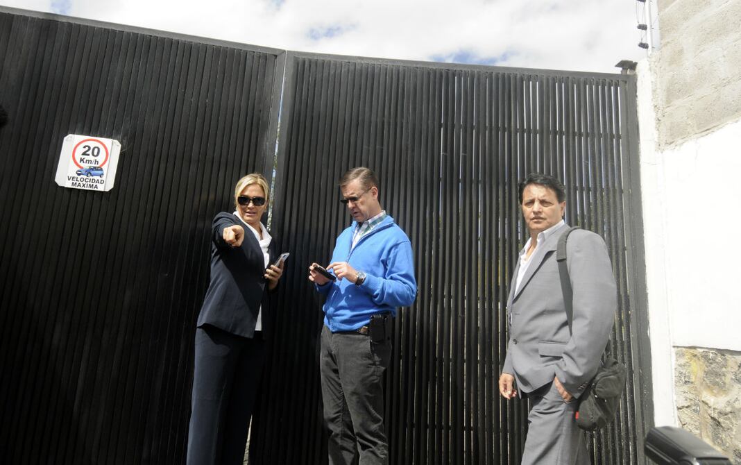 Los guardias de seguridad dejaron la garita para impedir que la asambleísta de Madera de Guerrero Cinthya Viteri tome fotografías del portón que sirve de entrada y salida al complejo de 34.000 metros cuadrados donde se presume funciona la Secretaría de Inteligencia, Senain, al nororiente de Quito.