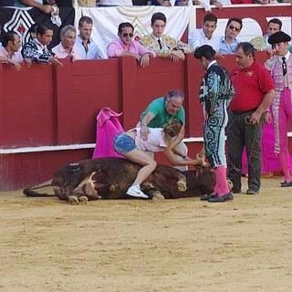 Virginia Ruiz, una española de 38 años, saltó el viernes las barreras de la plaza de La Malagueta frente a miles de espectadores para precipitarse sobre el animal, que yacía herido en el suelo antes de la estocada final.