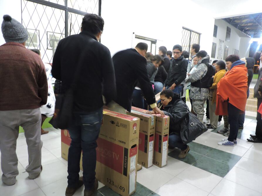 Cuatro horas esperó Robert C. para cancelar el impuesto aduanero de $ 321 por una televisión de 48 pulgadas que compró en Pasto en $ 720. Él viajó desde Manabí junto con su esposa y su hija pequeña para hacer compras en la frontera norte con Ecuador.