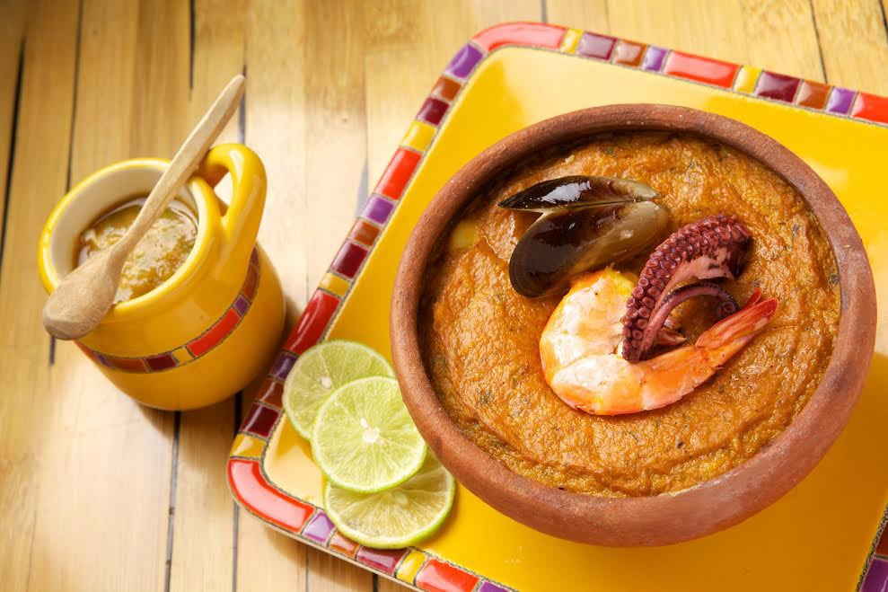 La cazuela de mariscos es un plato típico de la gastronomía ecuatoriana. Se ofrece en el restaurante Mi Tierra, ubicado en el centro comercial Las Terrazas en el km 1,5 de la avenida Samborondón.