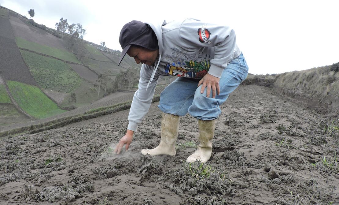 Un paisaje gris se observa en las zonas altas del cantón Quero, en Tungurahua, luego de que la ceniza del volcán, que lleva el nombre de la provincia, lo cubriera todo, aún más desde la madrugada del sábado cuando aumento la emisión.