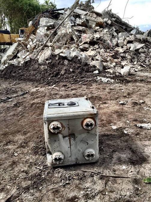 El operador Miguel Mato dijo a El Nuevo Herald que la caja de 60x60 centímetros (2x2 pies) pesa unos 315 kilogramos (700 libras). Dijo que la divisó cuando el piso se hundió.