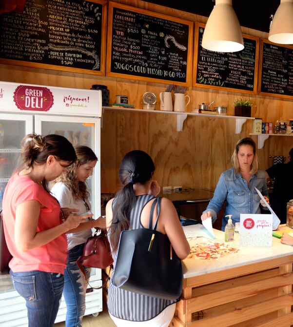 El aroma de los vegetales frescos es lo primero que se percibe al ingresar al lugar en el que prima el color verde en sus decoraciones. Las mesas grandes, como para 6 personas, con bancos largos hechos a base de palets y los centros de mesa que son baldes llenos de ramas con pequeñas flores, le dan ese toque acogedor al sitio.