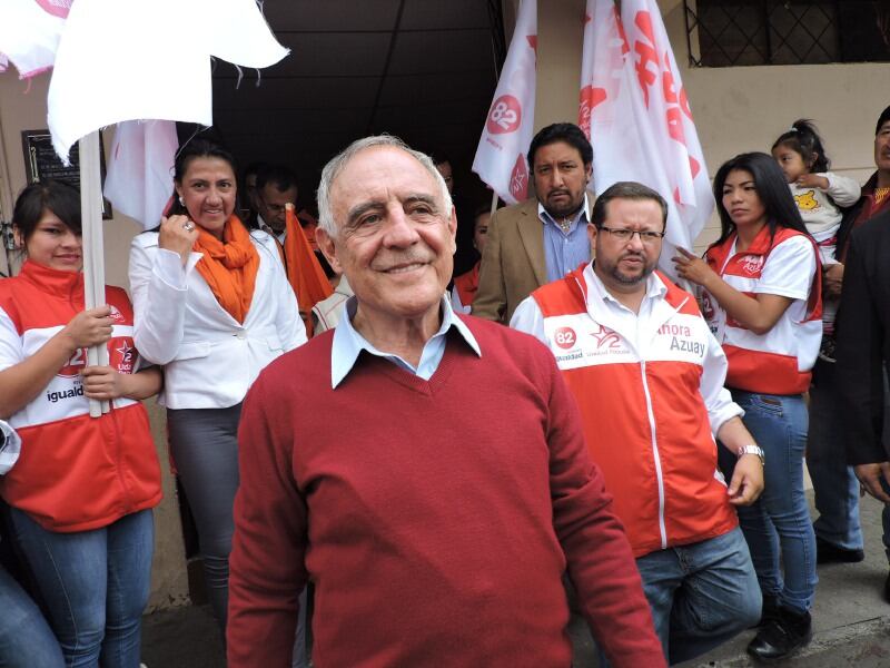 Paco Moncayo estuvo en Cuenca acompañado por el alcalde y los candidatos de su movimiento Igualdad, pero no de la Izquierda Democrática (ID).