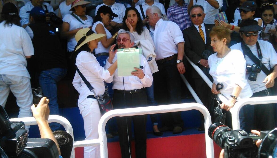 Cientos de personas llegaron este mediodía a la Tribuna de los Shyris, en el parque La Carolina, al norte de Quito, para manifestar su apoyo a Radio Visión y a su principal ejecutivo y periodista, Diego Oquendo Silva.