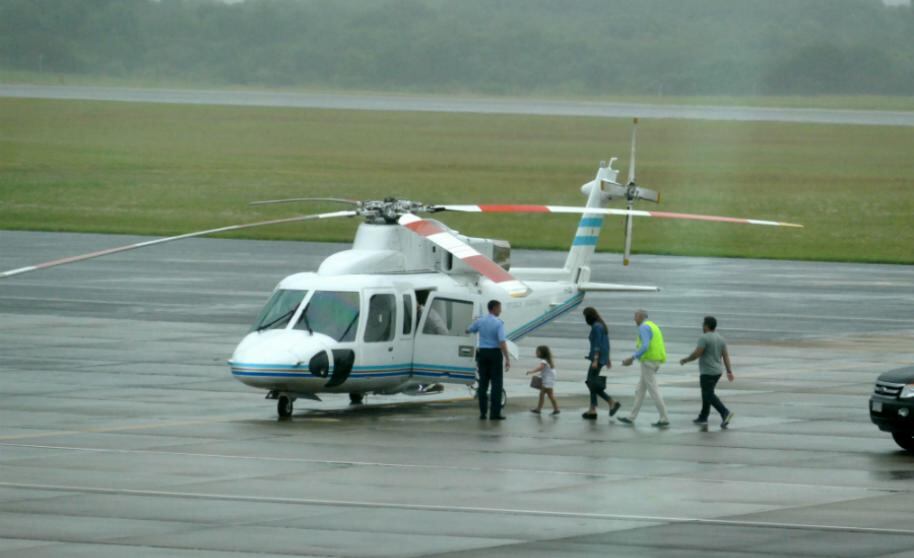 Juliana Awada, su pequeña hija y un acompañante abordaron el jueves en la tarde el helicóptero oficial de la presidencia en el Aeropuerto de Laguna del Sauce.