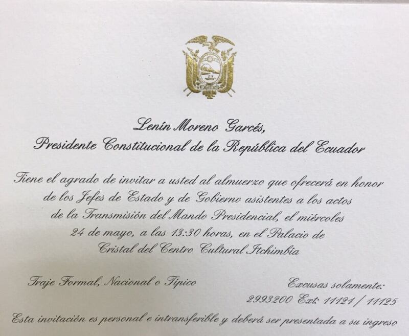 Tras la ceremonia de posesión en el pleno de la Asamblea, el presidente electo, Lenín Moreno, tiene prevista la realización de tres actos más con los jefes de Estado y Gobierno asistentes, la ciudadanía y pueblos y organizaciones indígenas.