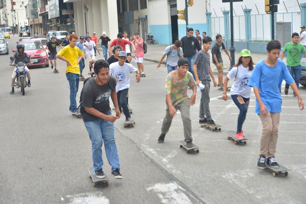 [VIDEO] Por un lapso de 15 minutos la avenida Malecón Simón Bolívar, desde Olmedo hasta la calle Loja, se convirtió en una pista para jóvenes y adultos aficionados a la patineta.