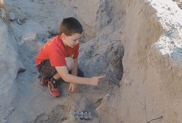 Jude Sparks, de 10 años, realizaba una excursión en el desierto cerca de Las Cruces cuando tropezó con lo que resultó ser el colmillo fosilizado de un estegomastodonte.