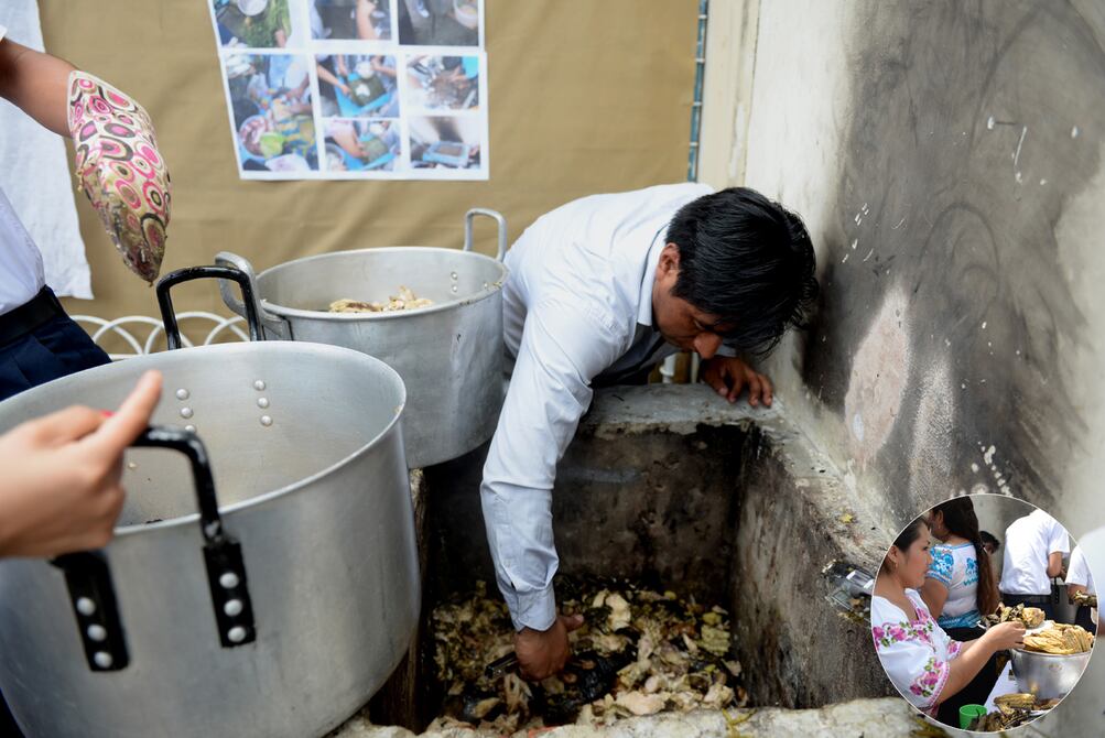 Una especie de fogón construido con bloques y recubierto de cemento, donde se cocinaban papas, choclos y carne desmenuzada de pollo simbolizaba el ritual de la pachamanka, un proceso ancestral de cocción de alimentos, en el que participaron decenas de estudiantes de instituciones educativas interculturales bilingües.