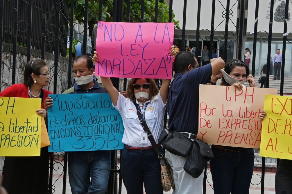 Decenas de periodistas hondureños se concentraron este miércoles frente al edificio del Poder Judicial para exigir la derogación de un artículo del Código Penal que castiga a los comunicadores con pena de cárcel si hacen "apología al terrorismo".