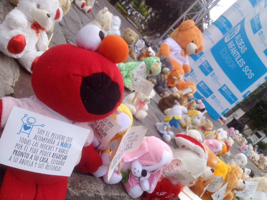 "Me opongo a que Martha esté lejos de su familia y sufra por eso", es uno de los mensajes que acompañan a almenos 400 peluches que fueron ubicados en el parque Pedro Moncayo, en Ibarra, a manera de plantón en pro los derechos de los niños.
