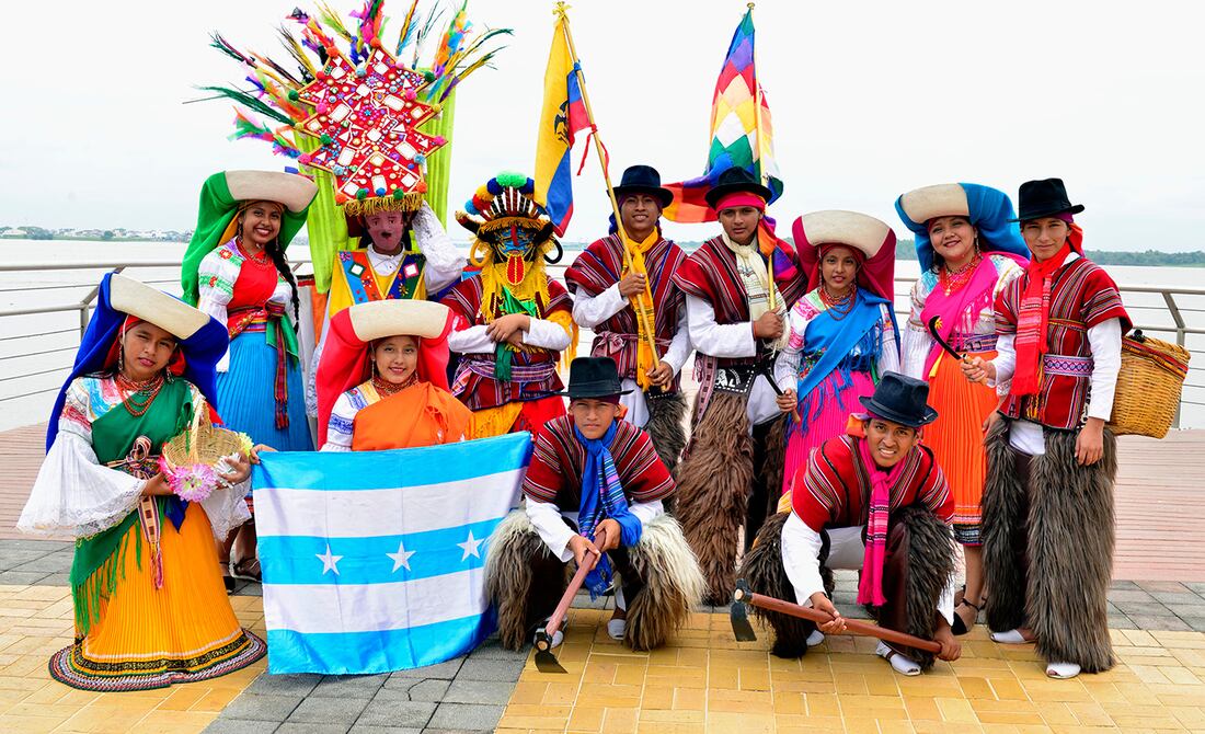 Alexandra, Brithany y Juan Carlos son parte de Intiñan (Camino hacia el sol). Un grupo de danza de la Unidad Educativa Intercultural Bilingüe Santiago de Guayaquil, ubicada en Flor de Bastión, bloque 1 B, en el norte de Guayaquil.