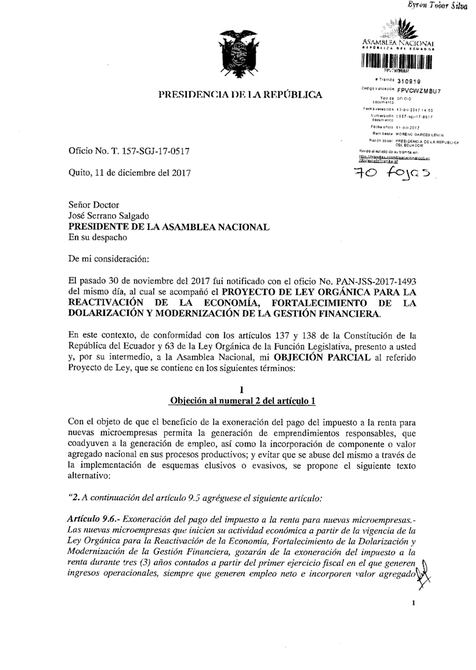 El presidente Lenín Moreno ratificó ayer, a través de su veto parcial a la Ley de Reactivación Económica, la necesidad de que la banca privada fomente el uso de medios de pago electrónicos en el país. Para ello, insistió en una serie de reformas al Código Monetario y Financiero que le retiran la facultad al Banco Central (BCE) de “implementar” y “promover” la moneda electrónica.