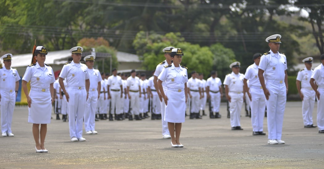 La teniente de Navio-IM, Paola Ochoa; y la teniente de Fragata-IM, Gabriela Urquizo fueron reconocidas la mañana de este viernes en la ceremonia de graduaciòn de 21 marinos en el curso de paracaidismo de Salto Libre, en el patio de la Infantería de Marina, ubicado en la Ciudadela Bellavista.